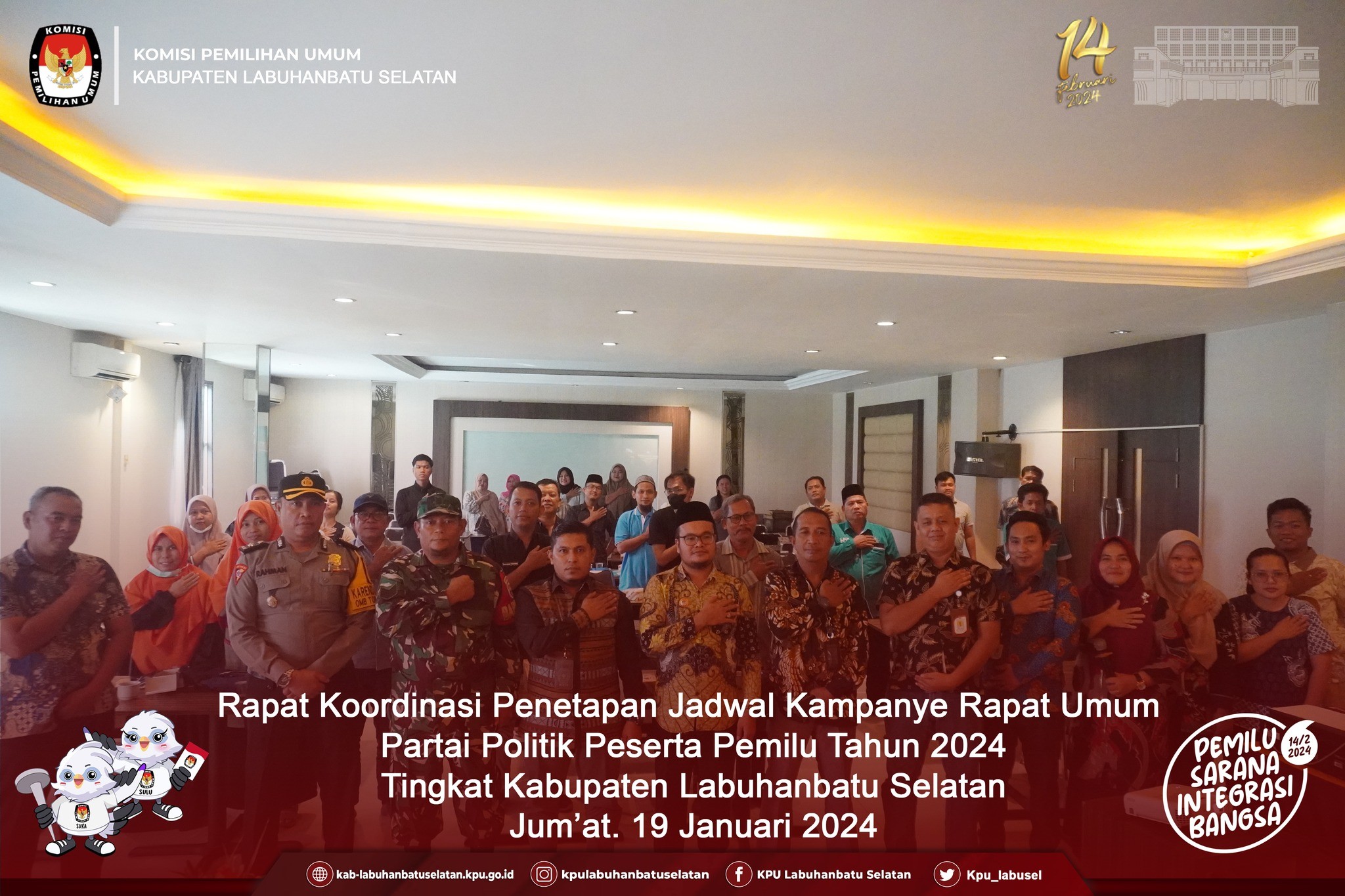 KPU Kabupaten Labuhanbatu Selatan Menyampaikan Laporan Pelaksanaan Pemilu dan Pemilihan Tahun 2024 kepada Pemerintah Kabupaten Labuhanbatu Selatan pada Selasa (29/04/2025). Kegiatan tersebut berlangsung di Ruang Rapat Bupati Lt. III yang di hadiri oleh Bupati Labuhanbatu Selatan Fery Sahputra Simatupang, S.H., Plh. Sekretaris Daerah Kabupaten Labuhanbatu Selatan Muhammad Reza Pahlevi Nasution, S.STP, M.AP dan PLT. Kepala Badan Kesatuan Bangsa dan Politik Muhammad Irsan, S.STP, Ketua KPU Kabupaten Labuhanbatu Selatan Adnan Rasyid, S.S. dan Anggota KPU Kabupaten Labuhanbatu Selatan, Plt. Sekretaris KPU Kabupaten Labuhanbatu Selatan Taufiq Harun, S.E., M.Si Beserta Jajarannya. Pada kesempatan tersebut Ketua KPU Kabupaten Labuhanbatu Selatan Adnan Rasyid, S.S juga menyampaikan secara singkat tentang proses penyelenggaraan Pemilu dan Pemilihan Bupati dan Wakil Bupati Labuhanbatu Selatan Tahun 2024, serta ucapan terimakasih kepada Pemerintah Kabupaten Labuhanbatu Selatan yang telah mendukung terlaksananya proses demokrasi di Kabupaten Labuhanbatu Selatan. KPU Kabupaten Labuhanbatu Selatan juga berkomitmen akan terus berupaya untuk meningkatkan kualitas penyelenggaraan Pemilu dan Pemilihan untuk masa yang akan datang. Bupati Labuhanbatu Selatan Fery Sahputra Simatupang, S.H. menyampaikan apresiasi atas kerja keras dan dedikasi KPU dalam menyelenggarakan Pemilu dan Pemilihan di Kabupaten Labuhanbatu Selatan. Bupati Labuhanbatu Selatan Fery Sahputra Simatupang, S.H. berharap sinergi antara pemerintah daerah dengan lembaga penyelenggara pemilu dapat terus terjalin dalam memperkuat demokrasi di masa yang akan datang. Kegiatan tersebut diakhiri dengan penyerahan laporan, serta piagam dan plakat oleh Ketua dan Anggota KPU Kabupaten Labuhanbatu Selatan kepada Bupati Labuhanbatu Selatan.