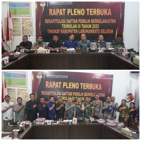Berdasarkan hasil pemutakhiran yang cermat selama Triwulan III (Bulan Juli - Bulan September) tahun 2025, Ketua Divisi Perencanaan, Data dan Informasi, Bapak Aswan Efendi,S.Pd.I, M.Pd memaparkan hasil Rekapitulasi secara keseluruhan, total Daftar Pemilih Berkelanjutan (DPB) Triwulan III Tahun 2025 di Kabupaten Labuhanbatu Selatan ditetapkan sebanyak 229.701 pemilih, yang terdiri dari 116.091 pemilih Laki-Laki dan 113.610 pemilih Perempuan.