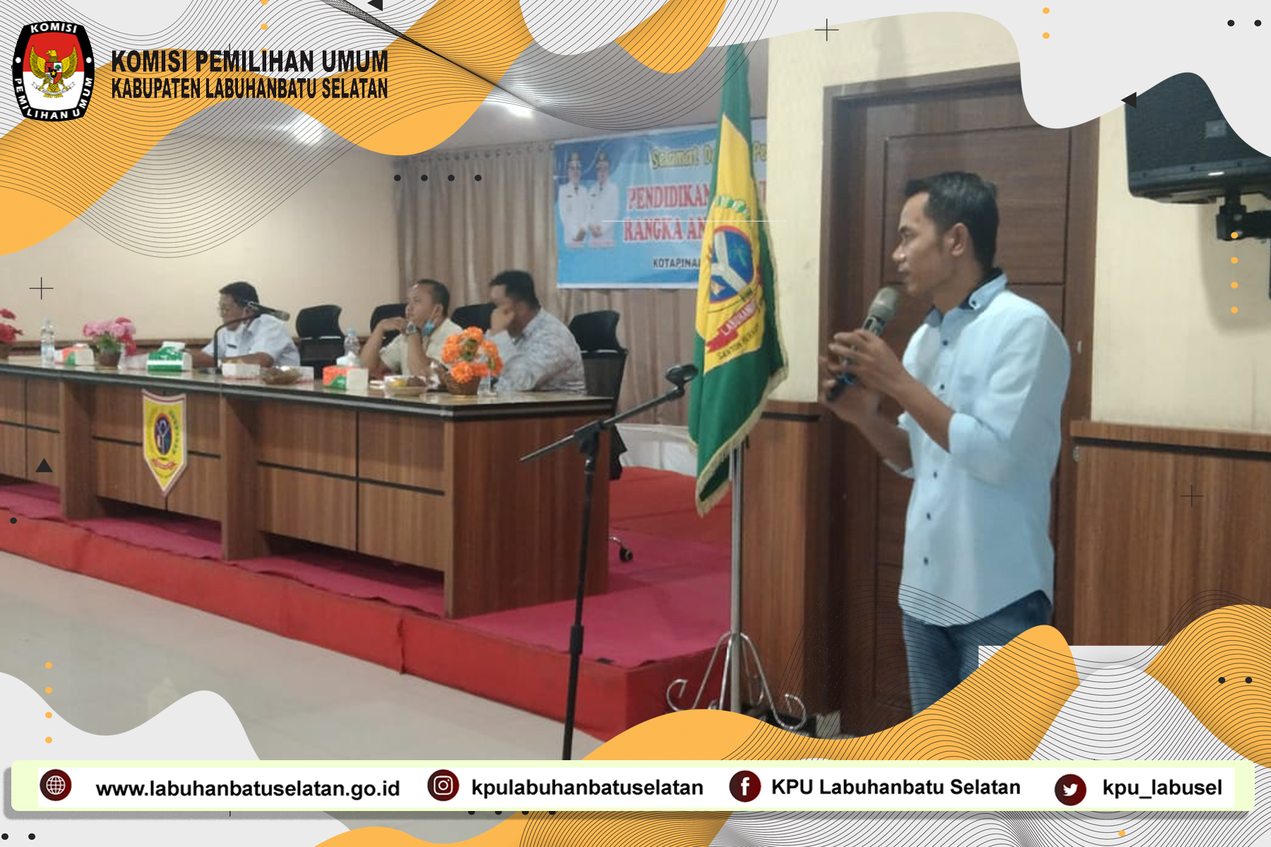 Pada Kegaiatan ini, KPU Labuhanbatu Selatan hadir sebagai Narasumber dengan membawakan materi pendidikan politik oleh Novrizal Harahap (Div. Sosdiklih, Parmas dan SDM) dan materi Daftar Pemilih Berkelanjutan oleh Saipul Bahri Dalimunthe (Div. Perencanaan dan Data).