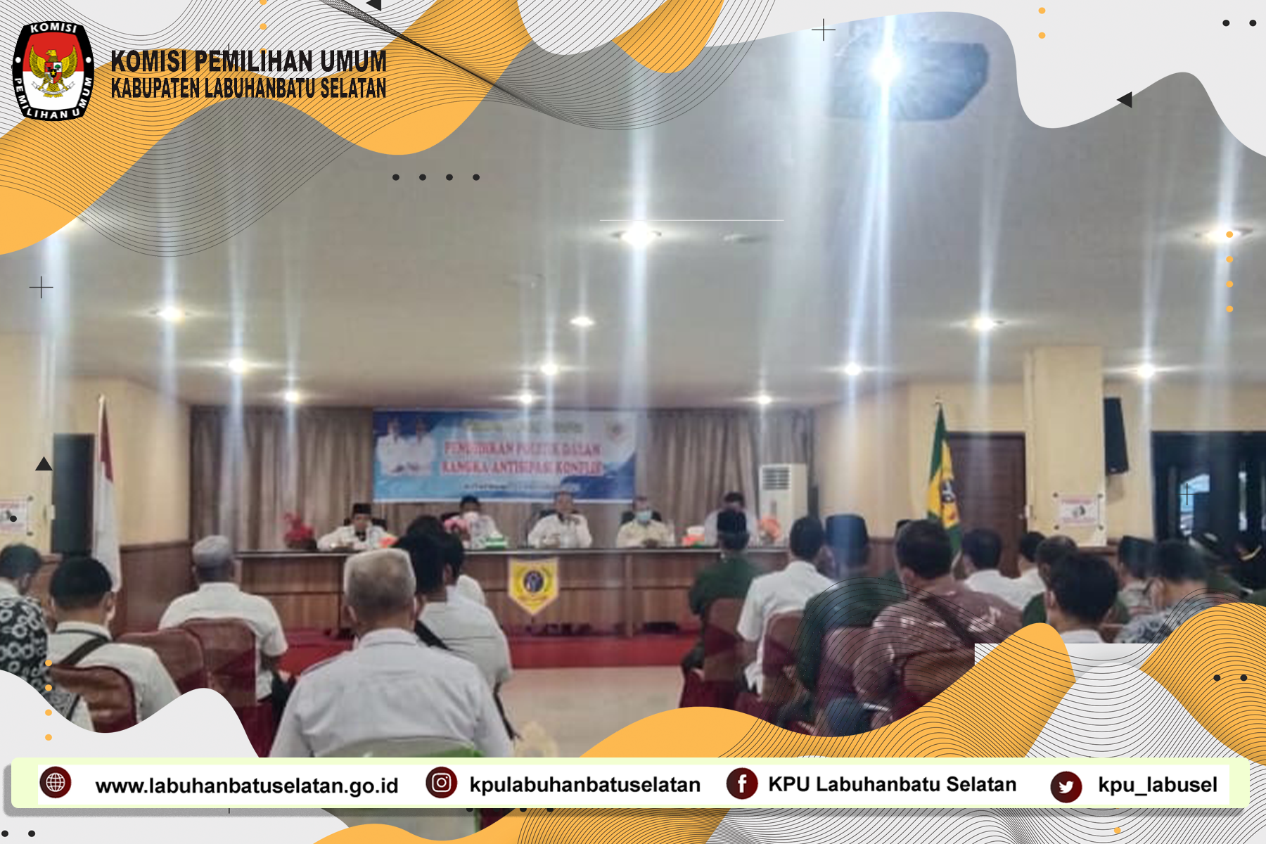 Kotapinang, KPU Labuhanbatu Selatan, Rabu (24/11), menghadiri kegiatan Pendidikan Politik Dalam Rangka Antisipasi Konflik yang diadakan Badan Kesatuan Bangsa dan Politik Kabupaten Labuhanbatu Selatan di Aula Lt. 1 Kantor Bupati Labuhanbatu Selatan Desa Sosopan.