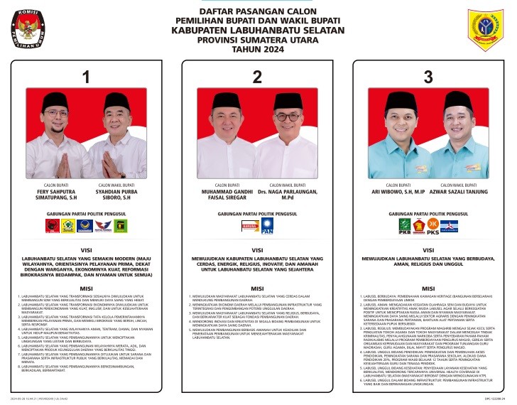 #TemanPemilih berikut Pengumuman Daftar Pasangan Calon Pemilihan Calon Bupati dan Wakil Bupati Kabupaten Labuhanbatu Selatan Pada Pemilihan Serentak Tahun 2024.
